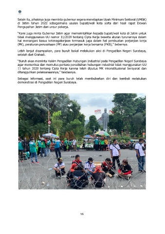 Lebih lanjut disampaikan, para buruh bakal melakukan aksi di Pengadilan Negeri Surabaya,