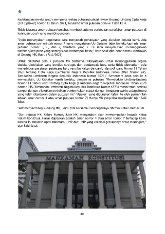 (UU Ciptaker) nomor 11 tahun 2021, terutama amar putusan poin ke 7 dan ke 4.