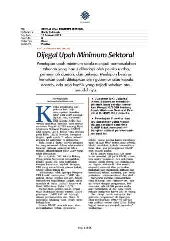 Title DIJEGAL UPAH MINIMUM SEKTORAL Media Name Bisnis Indonesia Pub. Date 15 Februari 2019 Page/URL 8 Media Type Koran Sentiment Positive Page 1 of 84.