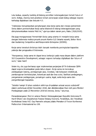 Dia juga mengapresiasi Pemerintah Swiss yang selama ini menjalin kerja sama