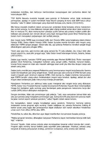 dilakukan FSPPB sangat janggal. Sebab kata dia, gaji pekerja Pertamina tersebut sangat tinggi