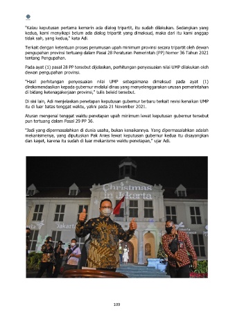 Di sisi lain, Adi menjelaskan penetapan keputusan gubernur terbaru terkait revisi kenaikan UMP