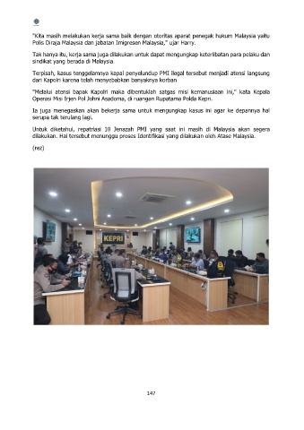 Terpisah, kasus tenggelamnya kapal penyelundup PMI ilegal tersebut menjadi atensi langsung