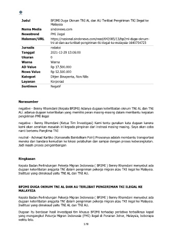 negative - Benny Rhamdani (Kepala BP2MI) Adanya dugaan keterlibatan oknum TNI AL dan TNI