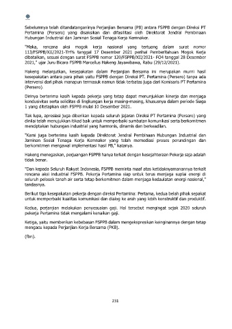 Sebelumnya telah ditandatanganinya Perjanjian Bersama (PB) antara FSPPB dengan Direksi PT