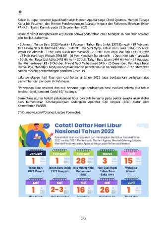 Rakor tersebut menghasilkan keputusan bahwa pada tahun 2022 terdapat 16 hari libur nasional