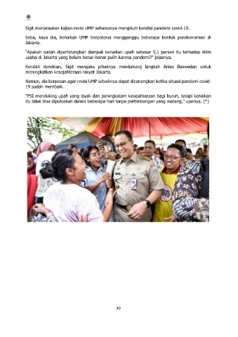 Sigit menjelaskan kajian revisi UMP seharusnya mengikuti kondisi pandemi covid-19.