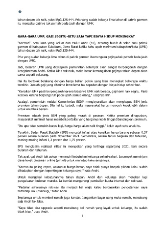 tahun depan tak naik, yakni Rp3.125.444. Pria yang sudah bekerja lima tahun di pabrik garmen