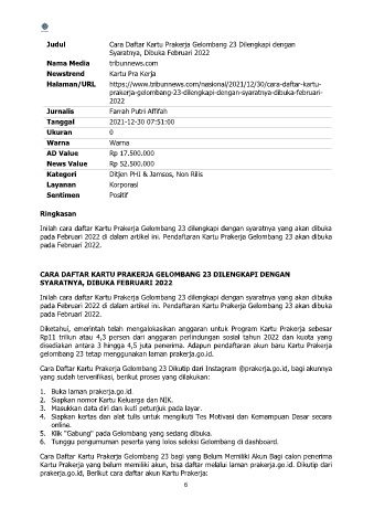 pada Februari 2022 di dalam artikel ini. Pendaftaran Kartu Prakerja Gelombang 23 akan dibuka
