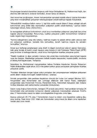 "Penilaian dilakukan dengan tujuan untuk perbaikan dan penyempurnaan kebijakan pelayanan