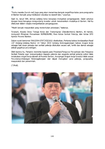 melakukan mogok kerja daerah di Provinsi Banten, mengingat mogok kerja tersebut tidak sesuai