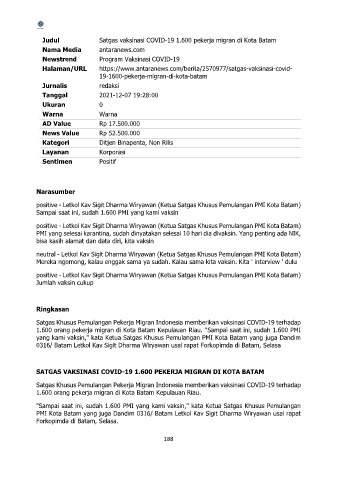 positive - Letkol Kav Sigit Dharma Wiryawan (Ketua Satgas Khusus Pemulangan PMI Kota Batam)