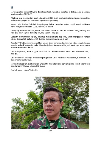 "PMI yang selesai karantina, sudah dinyatakan selesai 10 hari dia divaksin. Yang penting ada