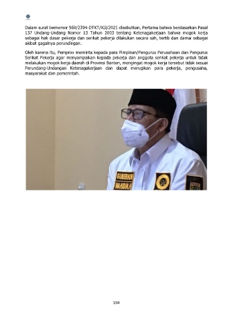 melakukan mogok kerja daerah di Provinsi Banten, mengingat mogok kerja tersebut tidak sesuai