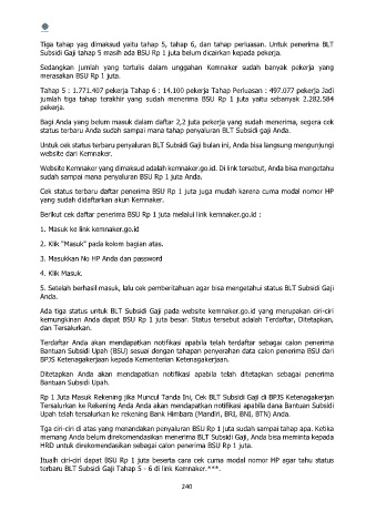 jumlah tiga tahap terakhir yang sudah menerima BSU Rp 1 juta yaitu sebanyak 2.282.584
