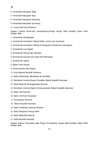 Kategori Instansi Pemerintah Kementerian/Lembaga dengan Hasil Penilaian Sistem Merit