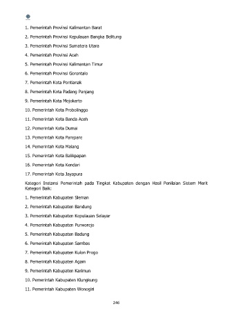 Kategori Instansi Pemerintah pada Tingkat Kabupaten dengan Hasil Penilaian Sistem Merit