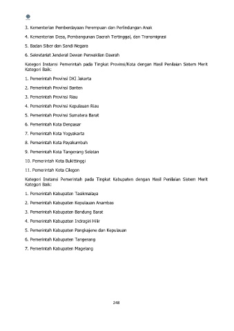 Kategori Instansi Pemerintah pada Tingkat Provinsi/Kota dengan Hasil Penilaian Sistem Merit