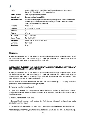 BLT SUBSIDI GAJI 2021 LEWAT ONLINE