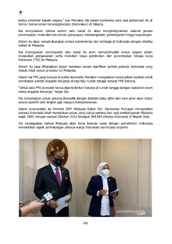 kedua pimpinan kepala negara," ujar Menaker Ida dalam konferensi pers usai pertemuan itu di