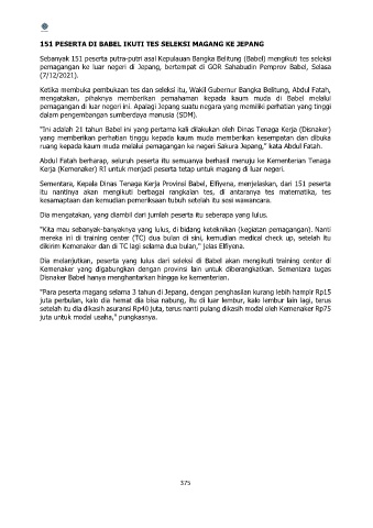 151 PESERTA DI BABEL IKUTI TES SELEKSI MAGANG KE JEPANG