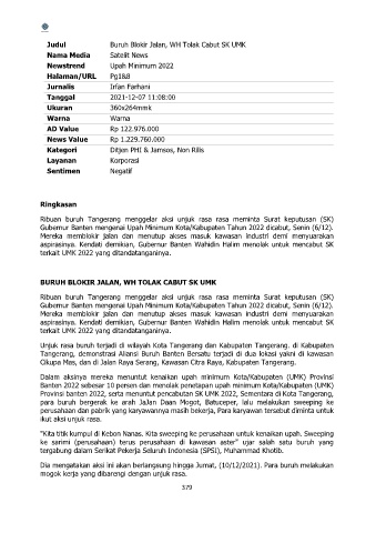Judul Buruh Blokir Jalan, WH Tolak Cabut SK UMK