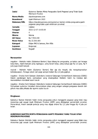 Judul Gubernur Banten Minta Pengusaha Ganti Pegawai yang Tolak Upah