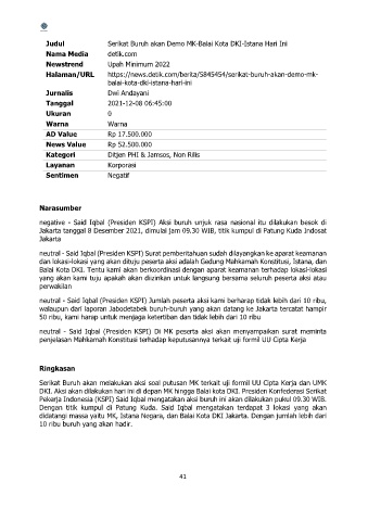 neutral - Said Iqbal (Presiden KSPI) Di MK peserta aksi akan menyampaikan surat meminta