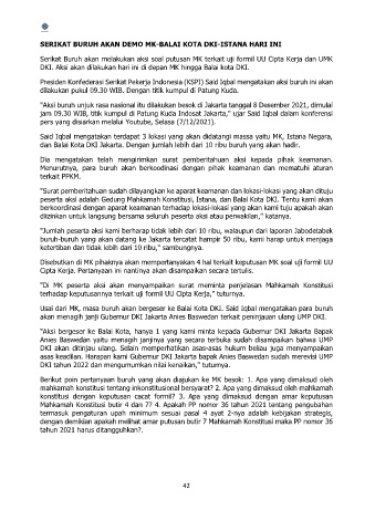 SERIKAT BURUH AKAN DEMO MK-BALAI KOTA DKI-ISTANA HARI INI