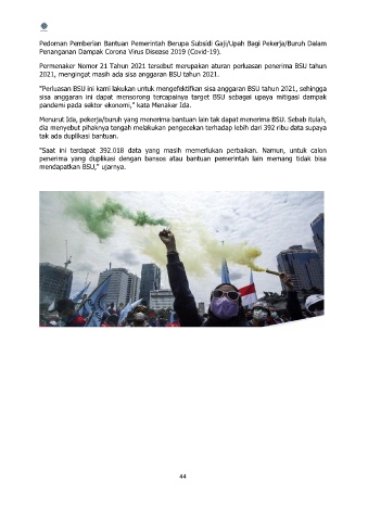 Permenaker Nomor 21 Tahun 2021 tersebut merupakan aturan perluasan penerima BSU tahun