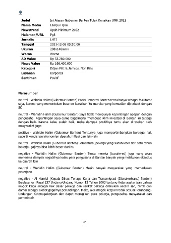 negative - Wahidin Halim (Gubernur Banten) Tentu mereka (buruh-red) juga yang akan