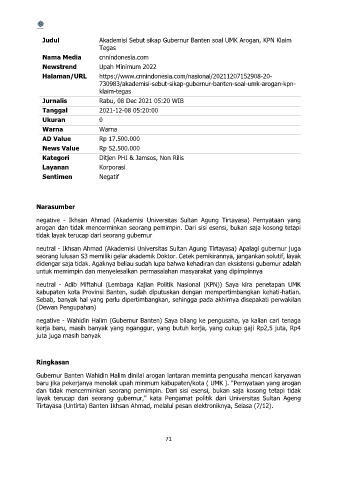negative - Ikhsan Ahmad (Akademisi Universitas Sultan Agung Tirtayasa) Pernyataan yang