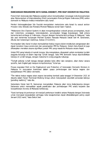 dapat menekan biaya perekrutan dan penempatan PMI ke Malaysia. Sistem Satu Kanal ini juga