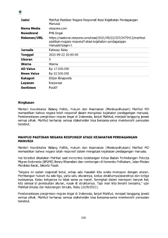 Judul Mahfud Pastikan Negara Responsif Atasi Kejahatan Perdagangan