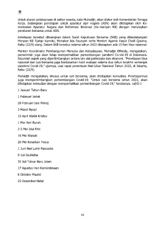 juga mempertimbangkan perkembangan Covid-19. "Untuk cuti bersama tahun 2022, akan