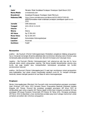 Judul Menaker Mulai Sosialisasi Persiapan Penetapan Upah Buruh 2022