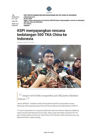 Title KSPI MENYAYANGKAN RENCANA KEDATANGAN 500 TKA CHINA KE INDONESIA