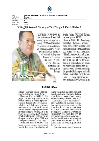 Title MPR-DPR KOMPAK TOLAK 500 TKA TIONGKOK KEMBALI MASUK Media Name Indopos Pub. Date 02 Mei 2020 Page/URL 5 Media Type Koran Sentiment Positive Sambungan…. Page 335 of 695.