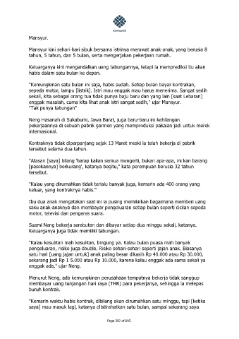 pekerjaannya di sebuah pabrik garmen yang memproduksi pakaian jadi untuk merek