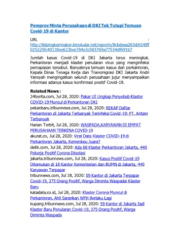 tribunnews.com, Jul 28, 2020: 59 Kantor di Jakarta Terpapar