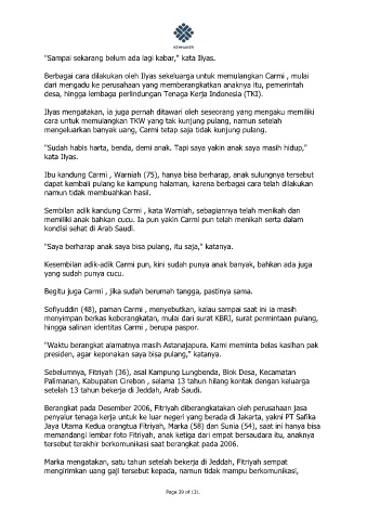Berbagai cara dilakukan oleh Ilyas sekeluarga untuk memulangkan Carmi , mulai