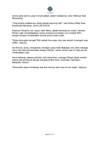 untuk mencoba berkomunikasi dengan Fitriyah, namun sampai saat ini tidak pernah