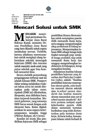 Title MENCARI SOLUSI UNTUK SMK Media Name Pikiran Rakyat Pub. Date 29 Juli 2019 Page/URL 14 Media Type Koran Sentiment Positive Page 8 of 131.