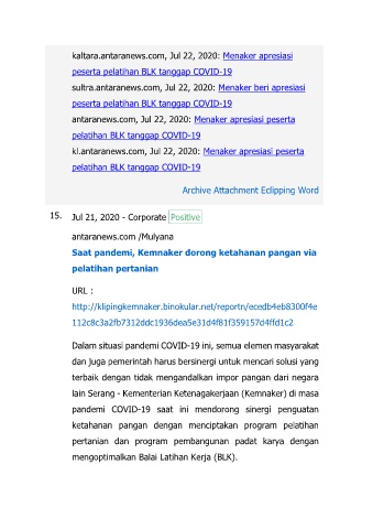 kl.antaranews.com, Jul 22, 2020: Menaker apresiasi peserta