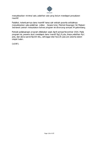 menyelesaikan satu pelatihan online . Secara total, Menteri Keuangan Sri Mulyani