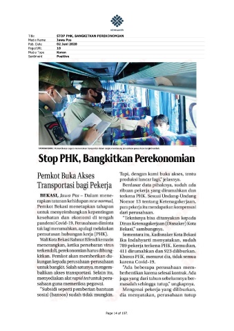 Title STOP PHK, BANGKITKAN PEREKONOMIAN Media Name Jawa Pos Pub. Date 02 Juni 2020 Page/URL 10 Media Type Koran Sentiment Positive Page 14 of 197.