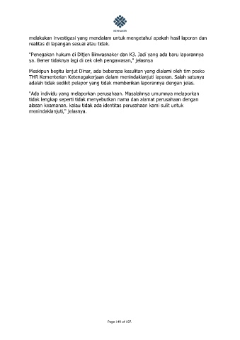 THR Kementerian Ketenagakerjaan dalam menindaklanjuti laporan. Salah satunya