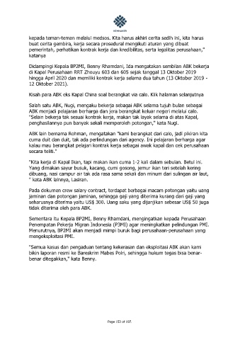 "Selain bekerja tak sesuai kontrak kerja, makan tak layak selama di atas Kapal,