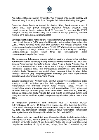 pelaksana managemen Kartu Prakerja dan mitra swasta tak memunyai sistem guna