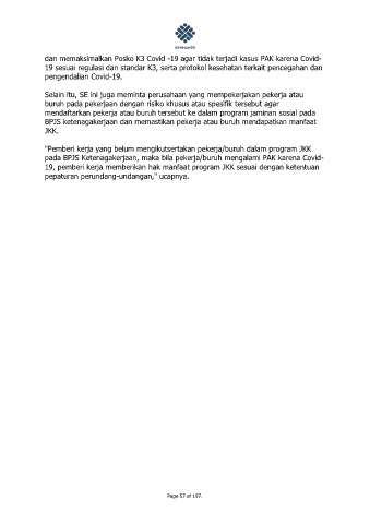 pada BPJS Ketenagakerjaan, maka bila pekerja/buruh mengalami PAK karena Covid-